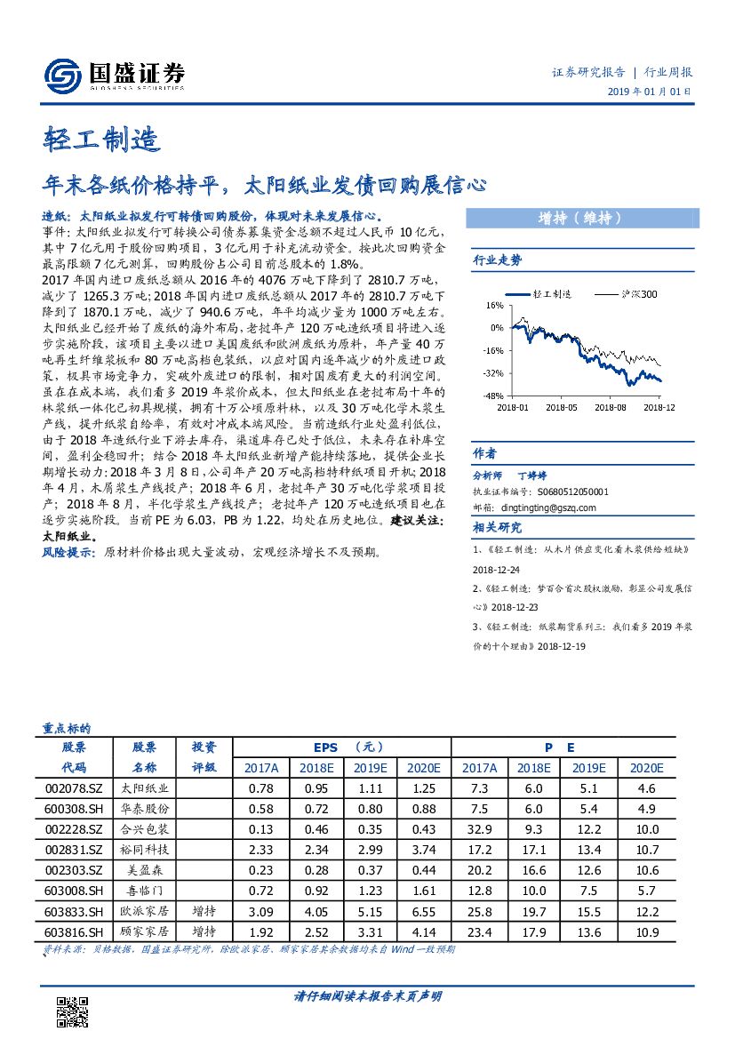 国盛证券:轻工制造行业周报:年末各纸价格持平,太阳纸业发债回购展信心.pdf