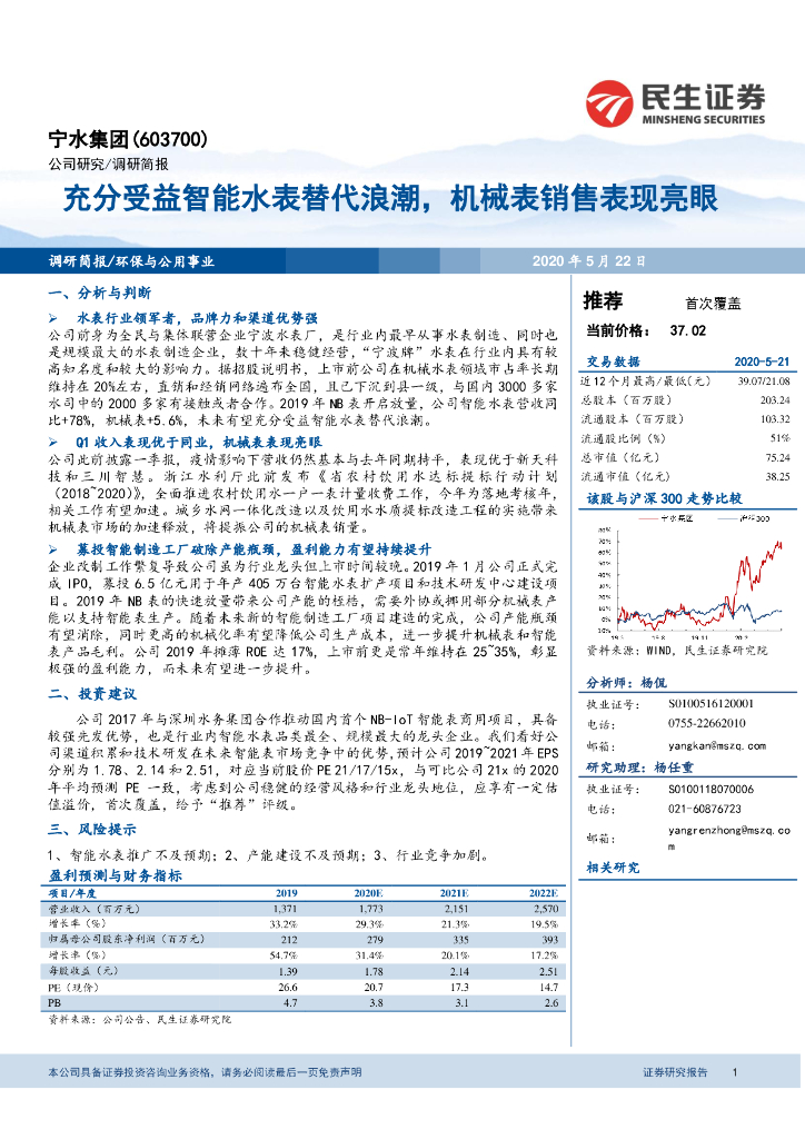 民生证券:宁水集团(603700)-充分受益智能水表替代浪潮,机械表销售表现亮眼.pdf
