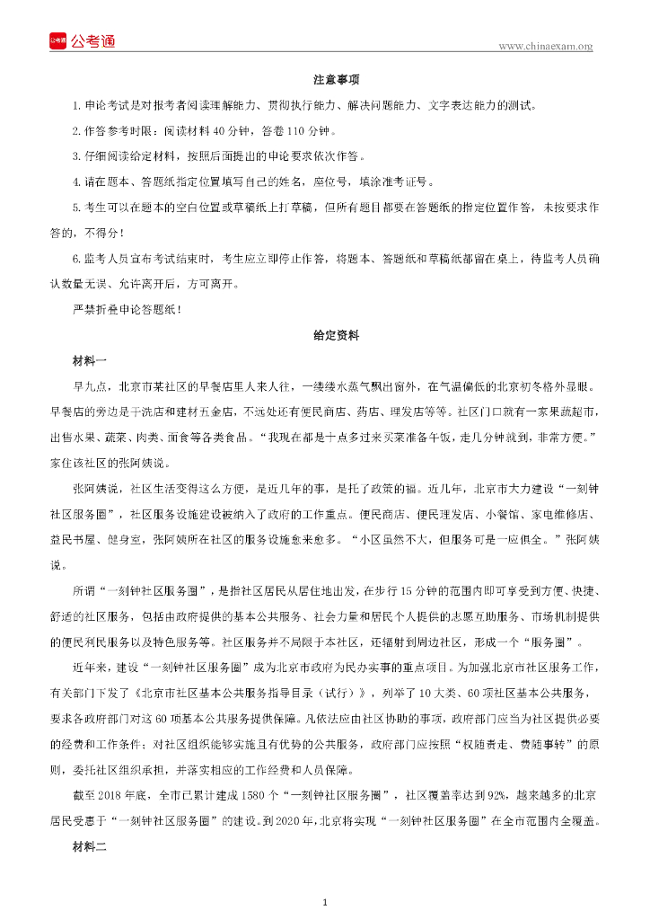 2020年北京公务员考试申论真题及答案(乡镇).pdf