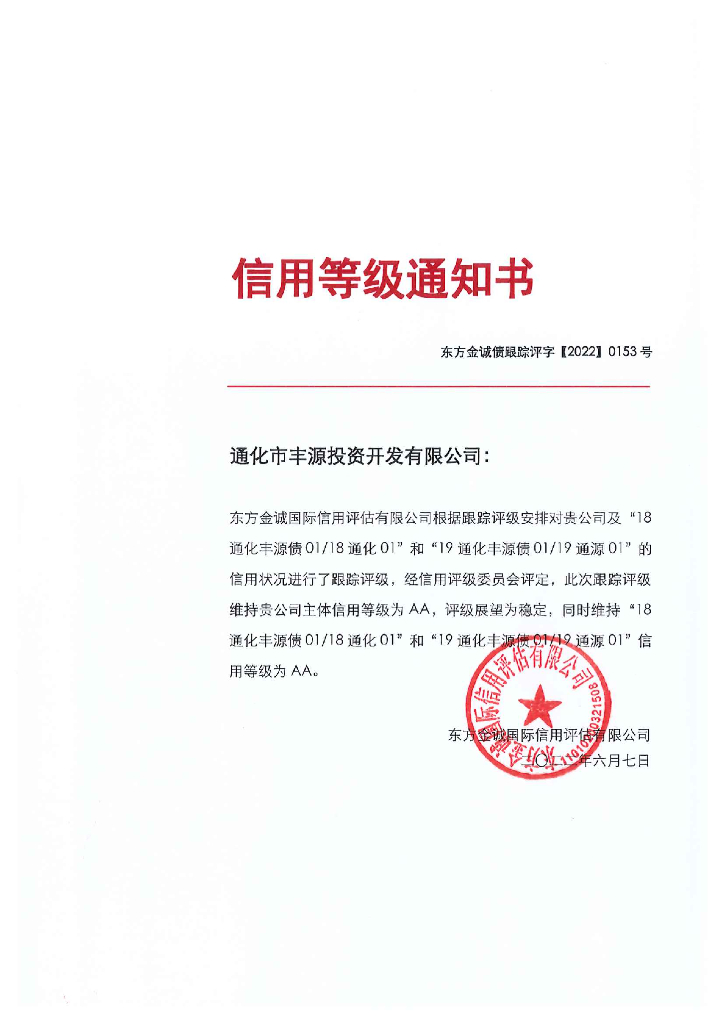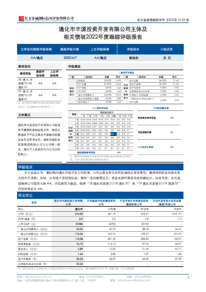 东方金诚:通化市丰源投资开发有限公司主体及相关债项2022年度跟踪评级报告.pdf