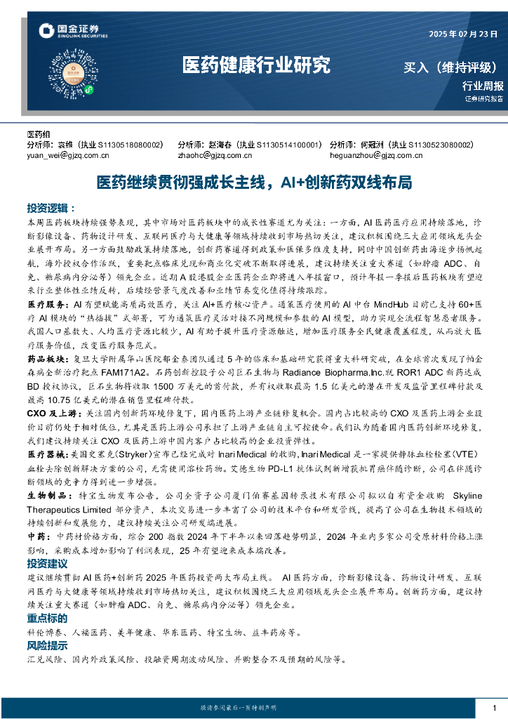 国金证券:医药健康行业研究:医药继续贯彻强成长主线,AI+创新药双线布局.pdf