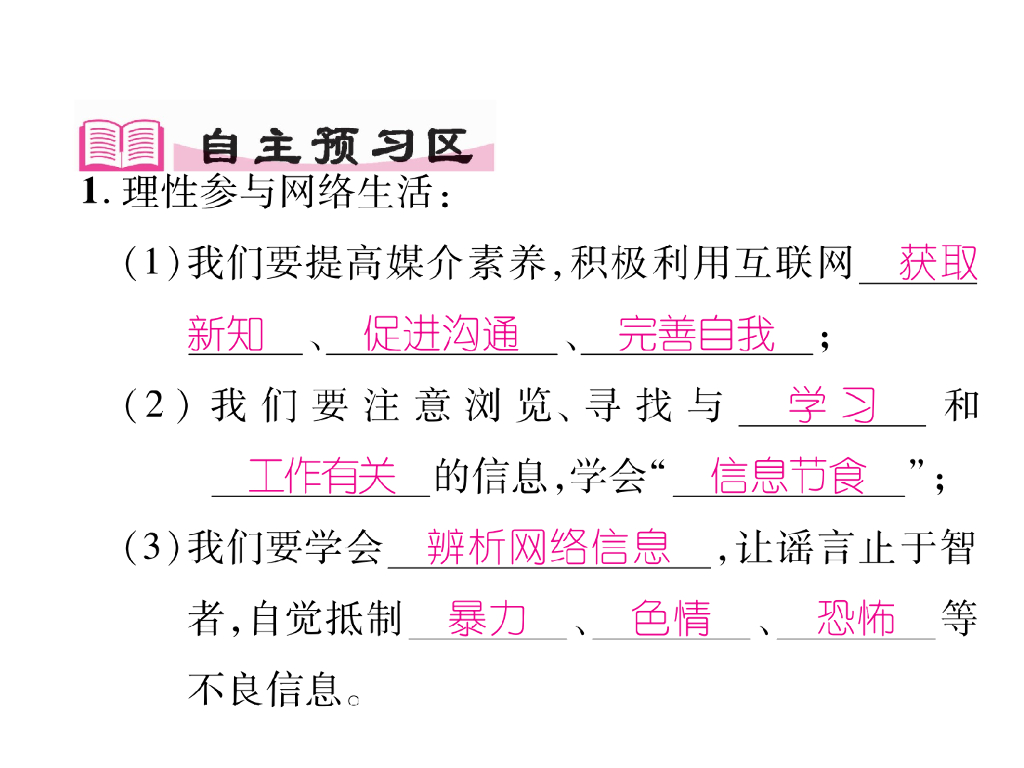 八年级道德与法治上册同步作业课件:第二课 网络生活新空间 第2课时 合理利用网络 (30张).ppt