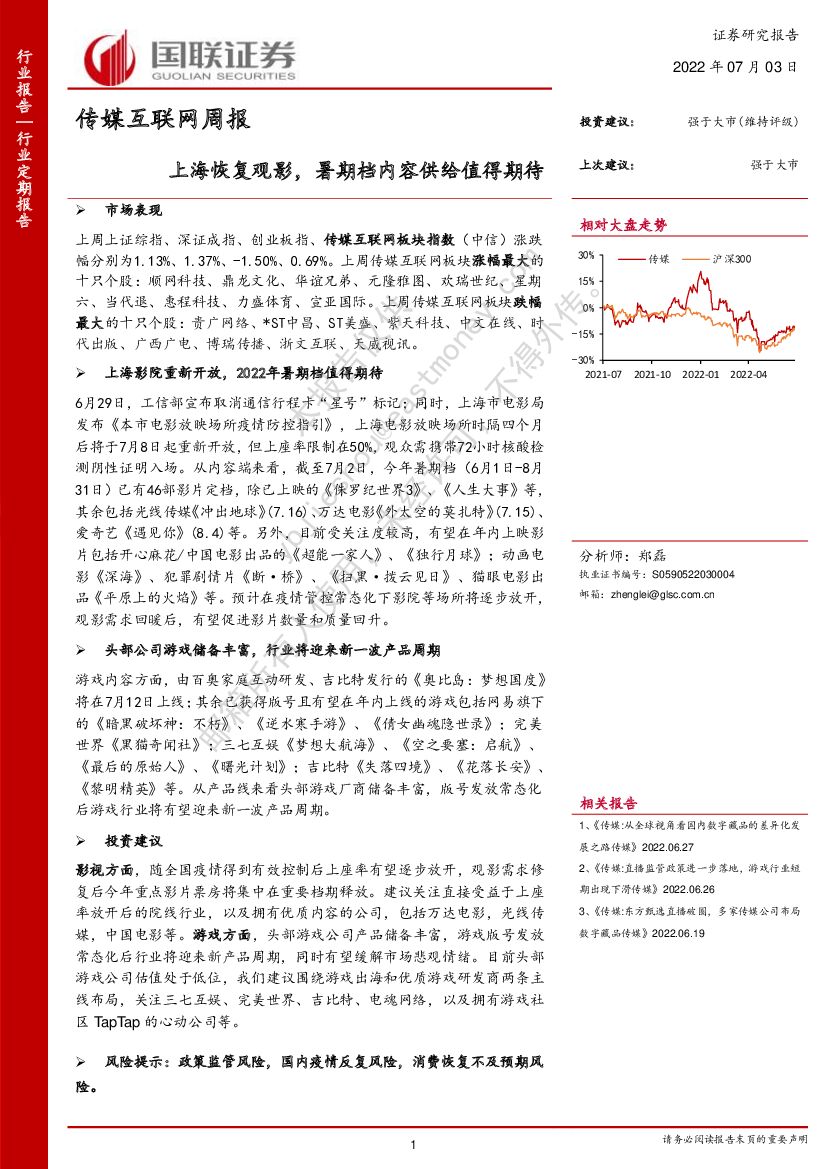 国联证券:传媒互联网周报:上海恢复观影,暑期档内容供给值得期待.pdf