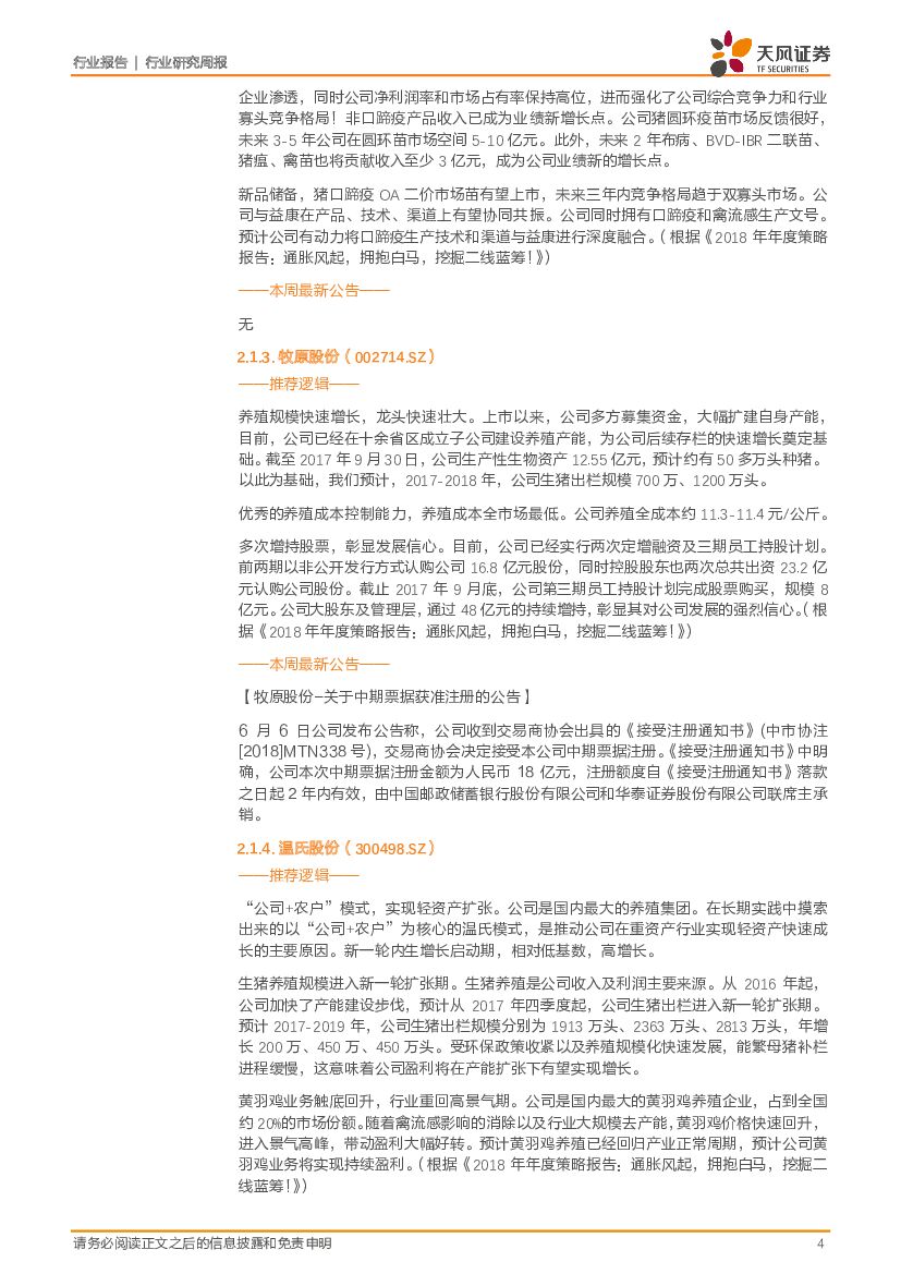 天风证券:农林牧渔:2018年第23周周报:本周鸡价上涨加速!继续重点推荐二季度畜禽板块投资机会!(鸡景气未变,鸭龙头底部、猪反弹继续).pdf
