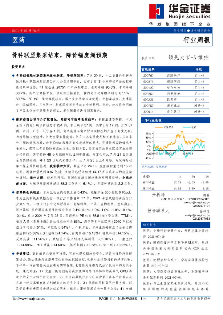 华金证券:医药行业周报:骨科联盟集采结束,降价幅度超预期.pdf
