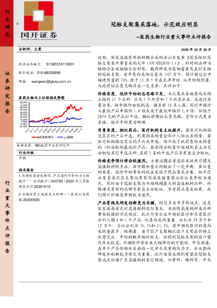 国开证券:医药生物行业重大事件点评报告:冠脉支架集采落地,示范效应明显.pdf