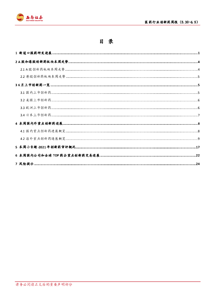 西南证券:医药行业创新药周报:2022年6月第一周创新药周报(附小专题-2021年创新药审评概况).pdf