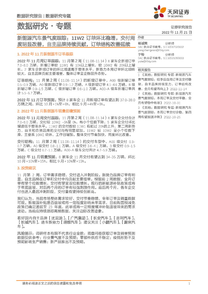 天风证券:新能源汽车景气度跟踪:11W2订单环比稳增,交付周度明显改善,自主品牌持续贡献,订单结构改善延续.pdf