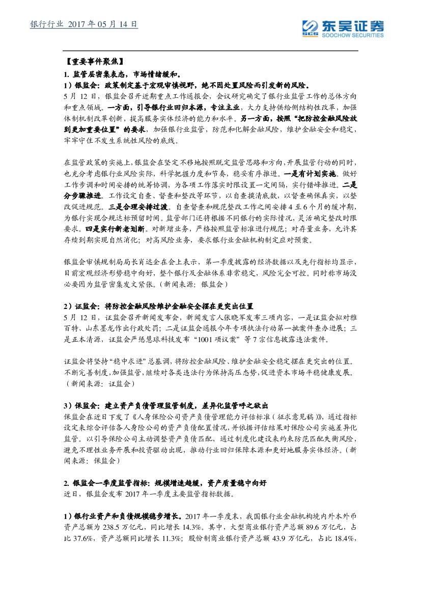 东吴证券:银行行业周报:银监会通报监管重点工作,市场情绪缓和.pdf