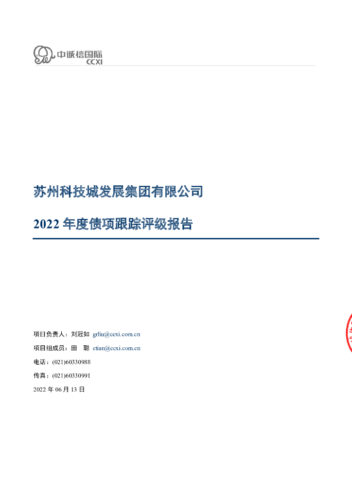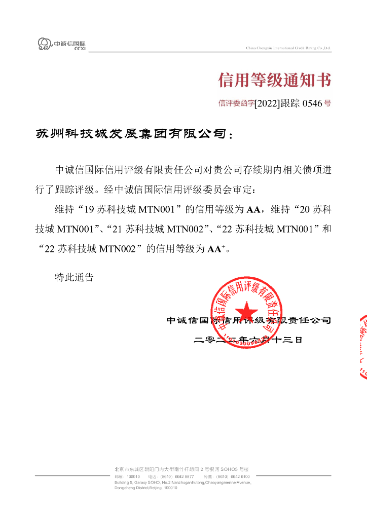 中诚信:苏州科技城发展集团有限公司2022年度债项跟踪评级报告.pdf