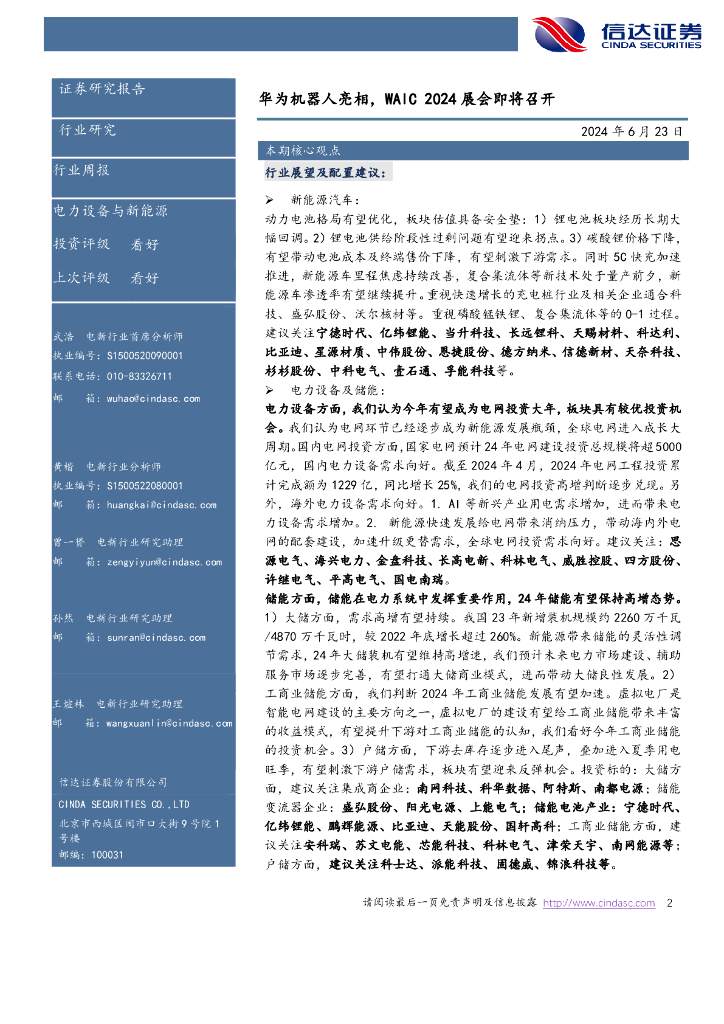 信达证券:电新周报:华为机器人亮相,WAIC2024展会即将召开电力设备与新能源.pdf