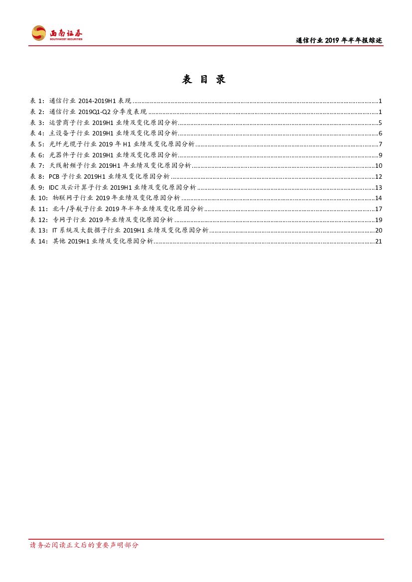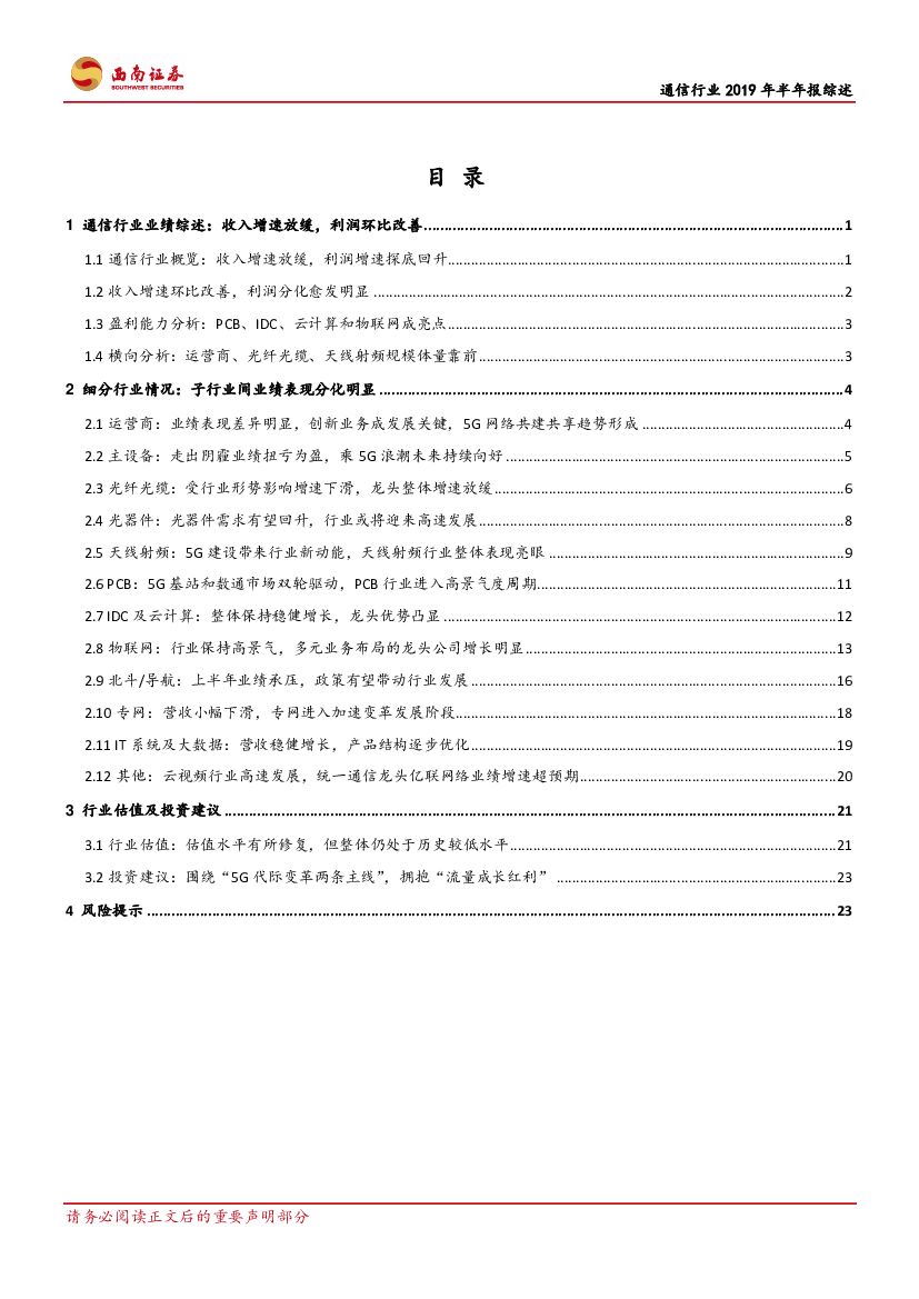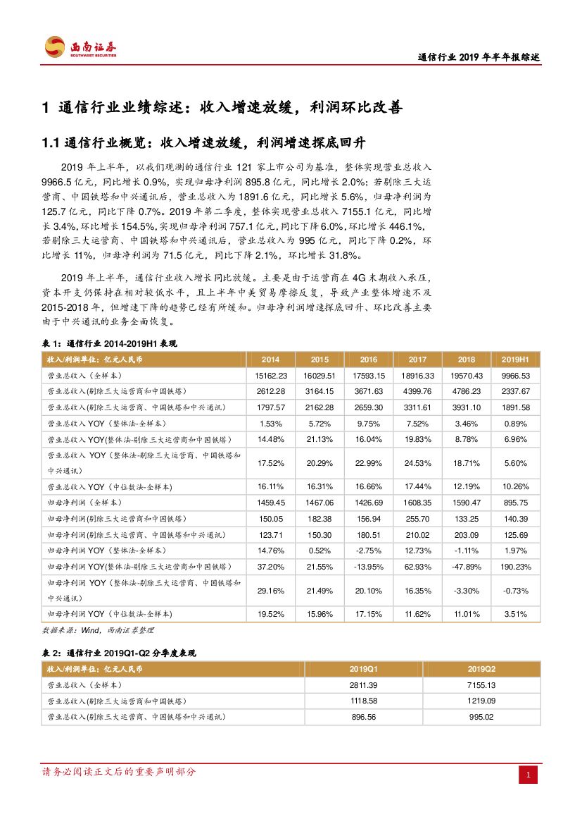 西南证券:通信行业2019年半年报综述:二季度环比改善,无线侧、主设备、物联网增长亮眼.pdf