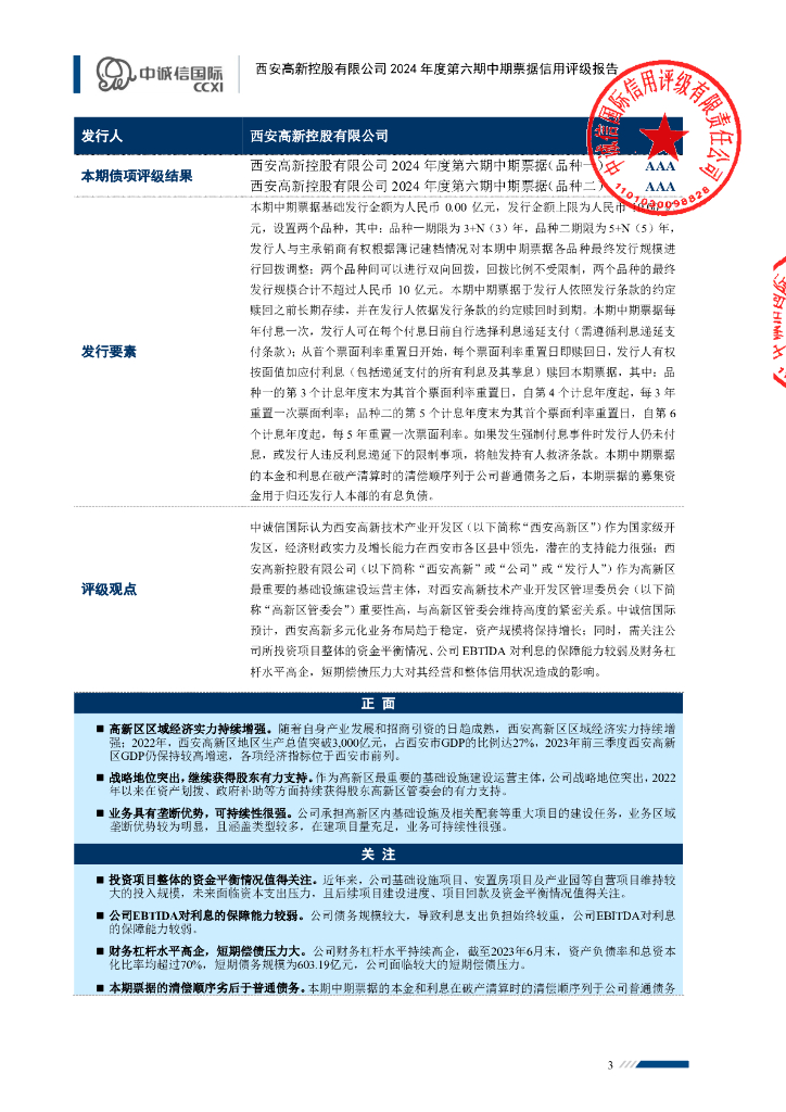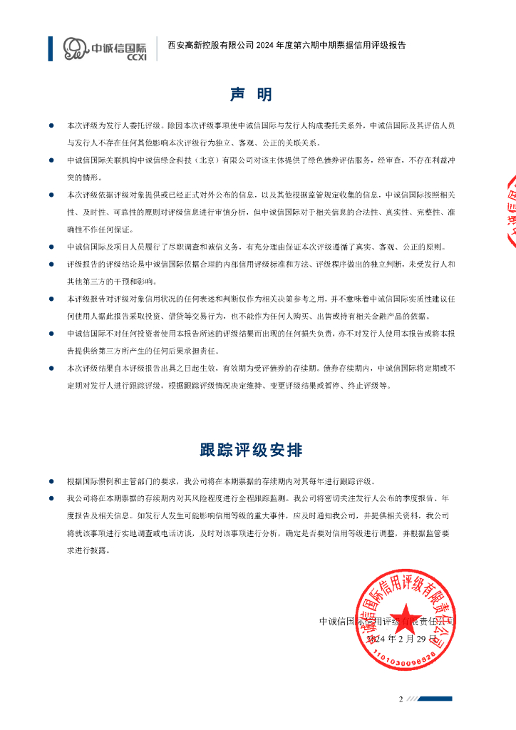 中诚信:西安高新控股有限公司2024年度第六期中期票据信用评级报告.pdf