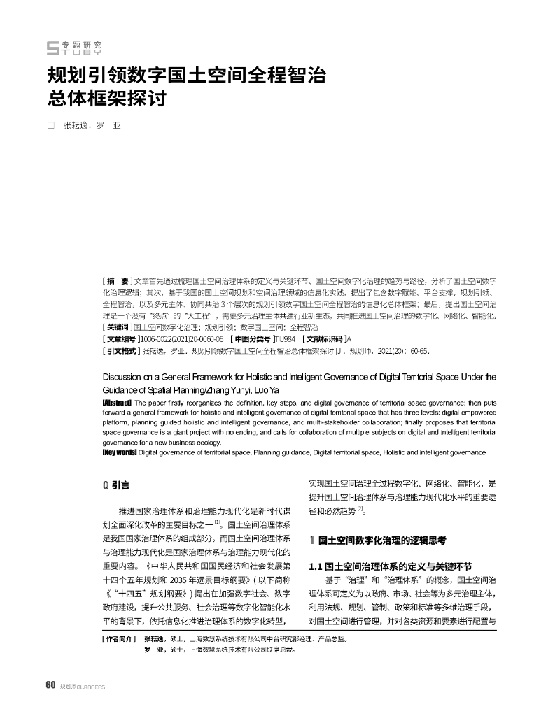 张耘逸:规划引领数字国土空间全程智治总体框架探讨.pdf
