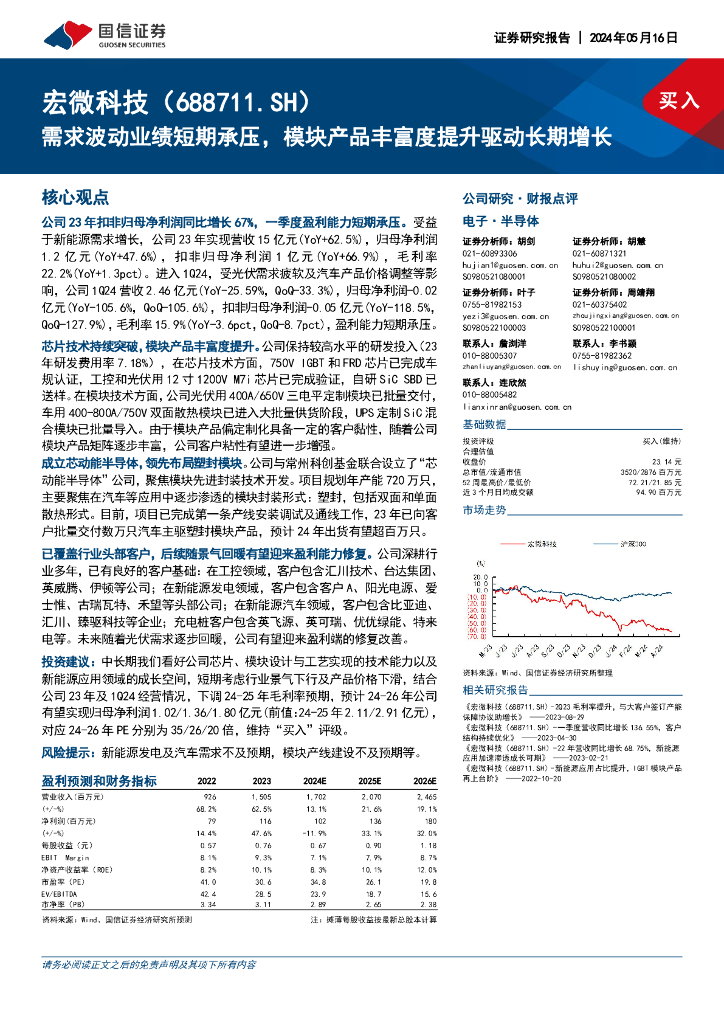 国信证券:宏微科技(688711)-需求波动业绩短期承压,模块产品丰富度提升驱动长期增长.pdf