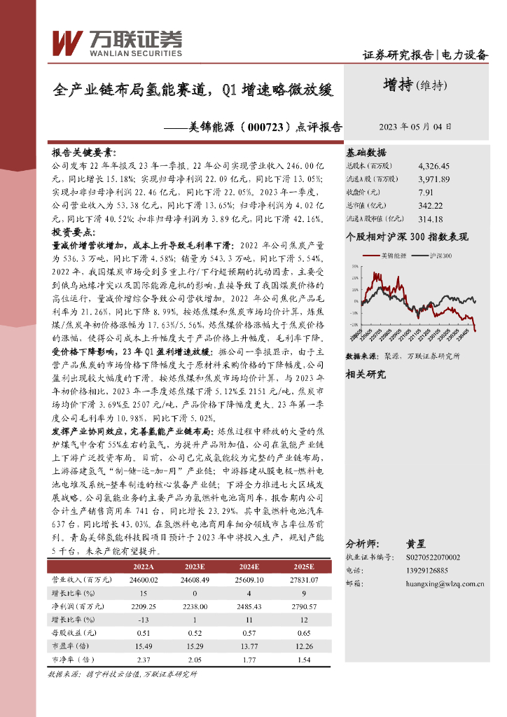 万联证券:美锦能源(000723)-点评报告:全产业链布局氢能赛道,Q1增速略微放缓.pdf
