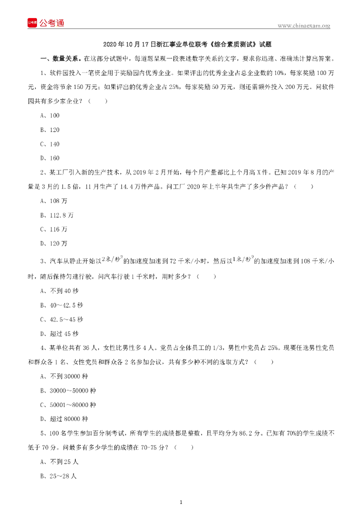 2020年10月17日浙江事业单位联考《综合素质测试》试题.pdf