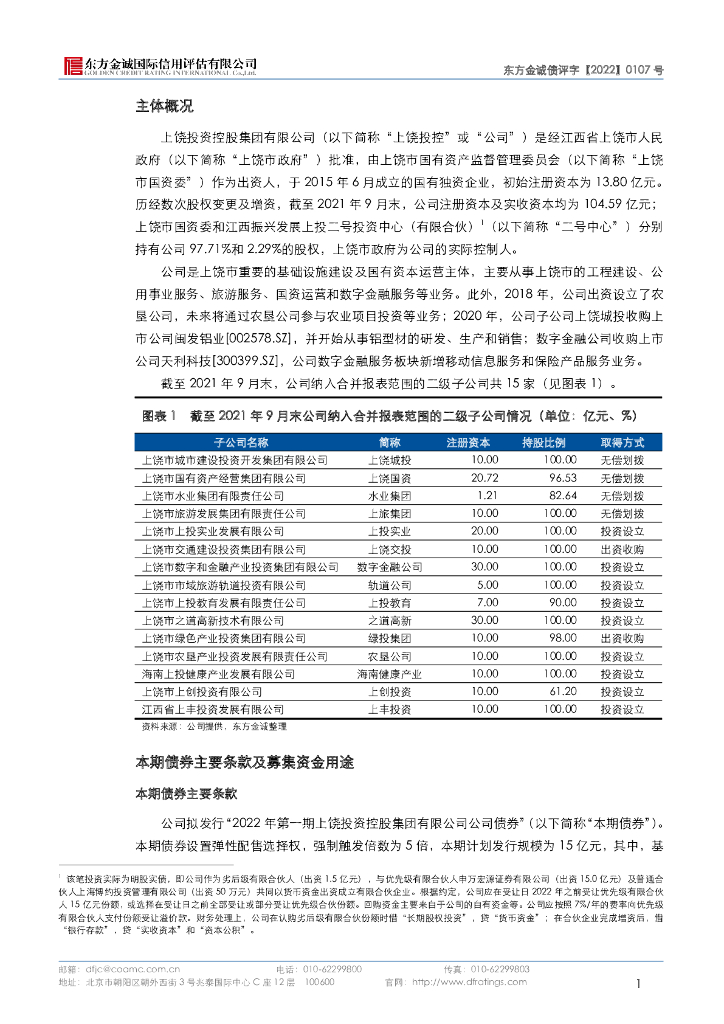 东方金诚:2022年第一期上饶投资控股集团有限公司公司债券信用评级报告.pdf
