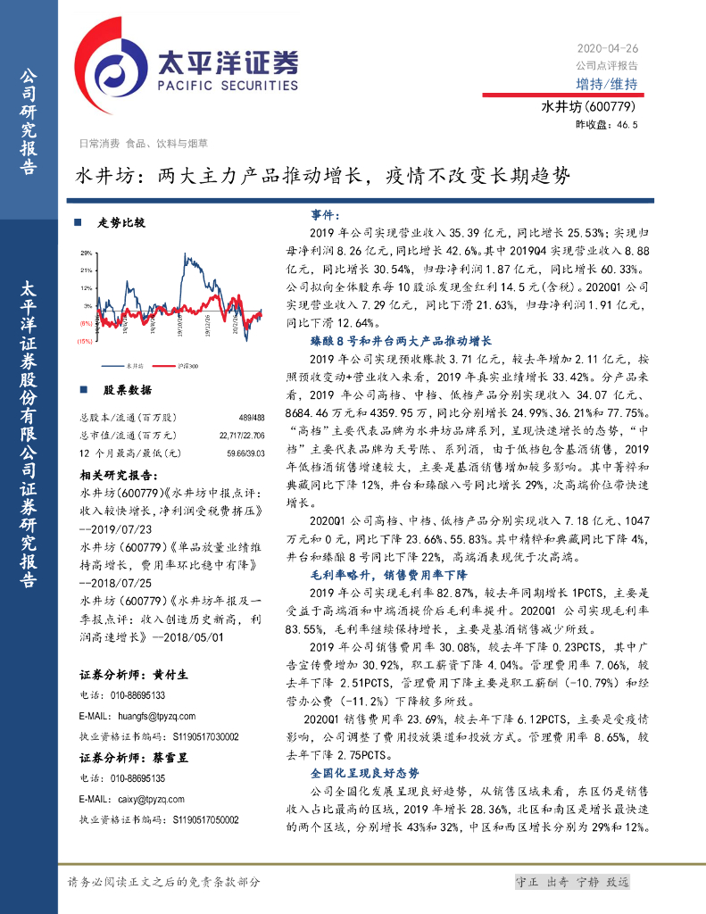太平洋证券:水井坊:两大主力产品推动增长,疫情不改变长期趋势.pdf