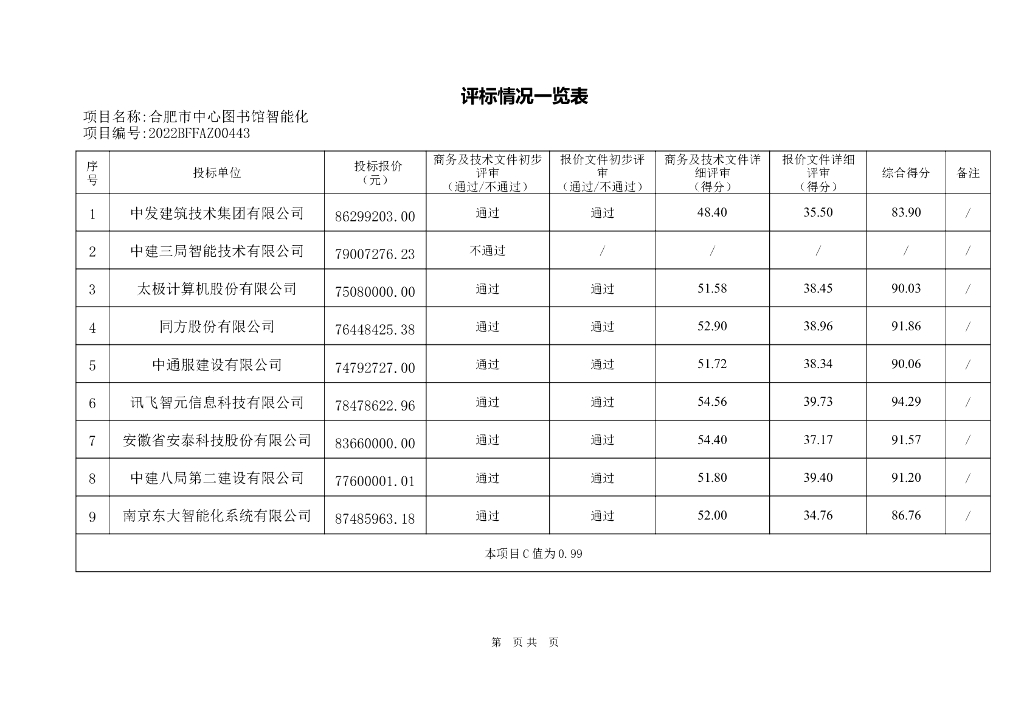 合肥市中心图书馆智能化 中标候选人信息表及评标情况一览表.doc