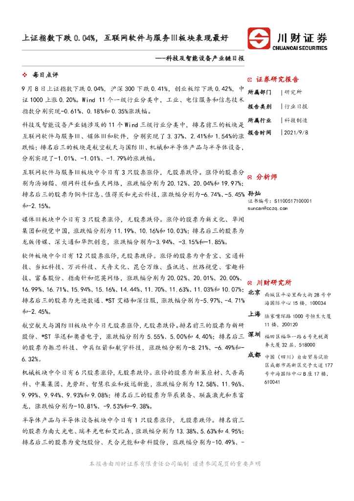川财证券:科技及智能设备产业链日报:上证指数下跌0.04%,互联网软件与服务Ⅲ板块表现最好.pdf