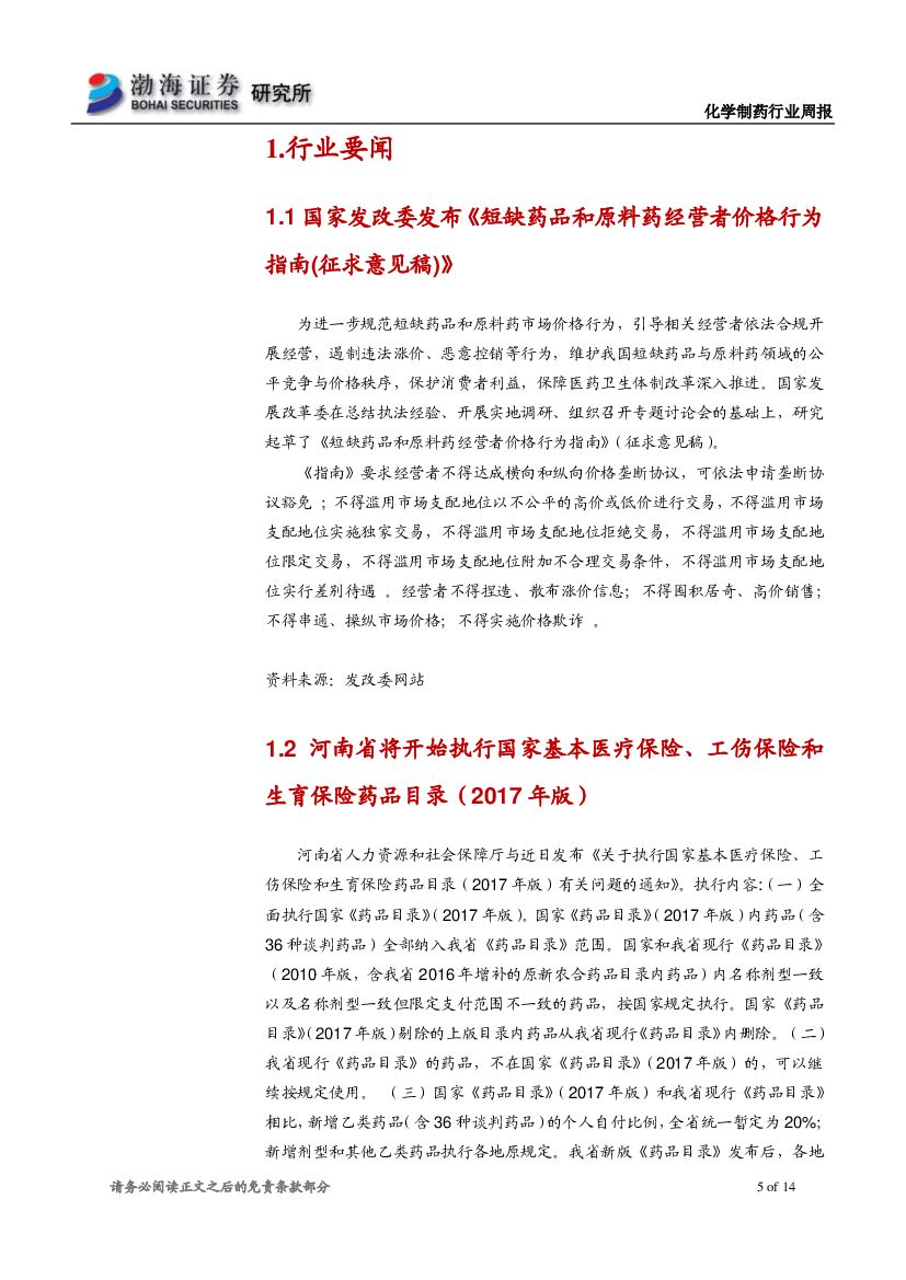 渤海证券:化学制药行业周报:继续关注低估值白马股和估值合理的成长股.pdf