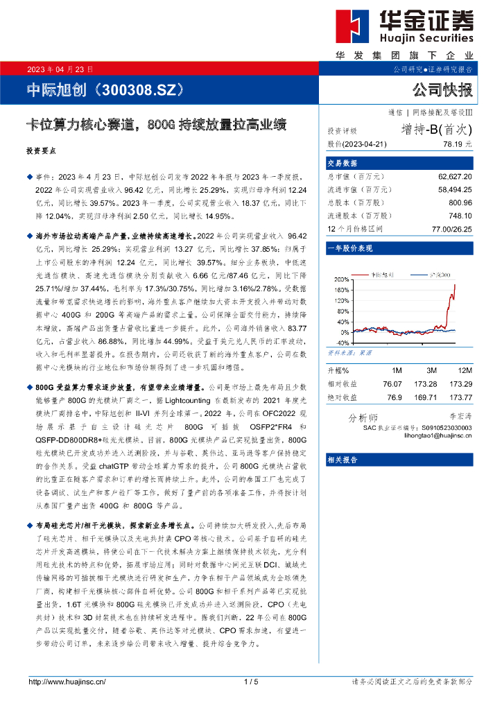 华金证券:中际旭创(300308)-卡位算力核心赛道,800G持续放量拉高业绩.pdf