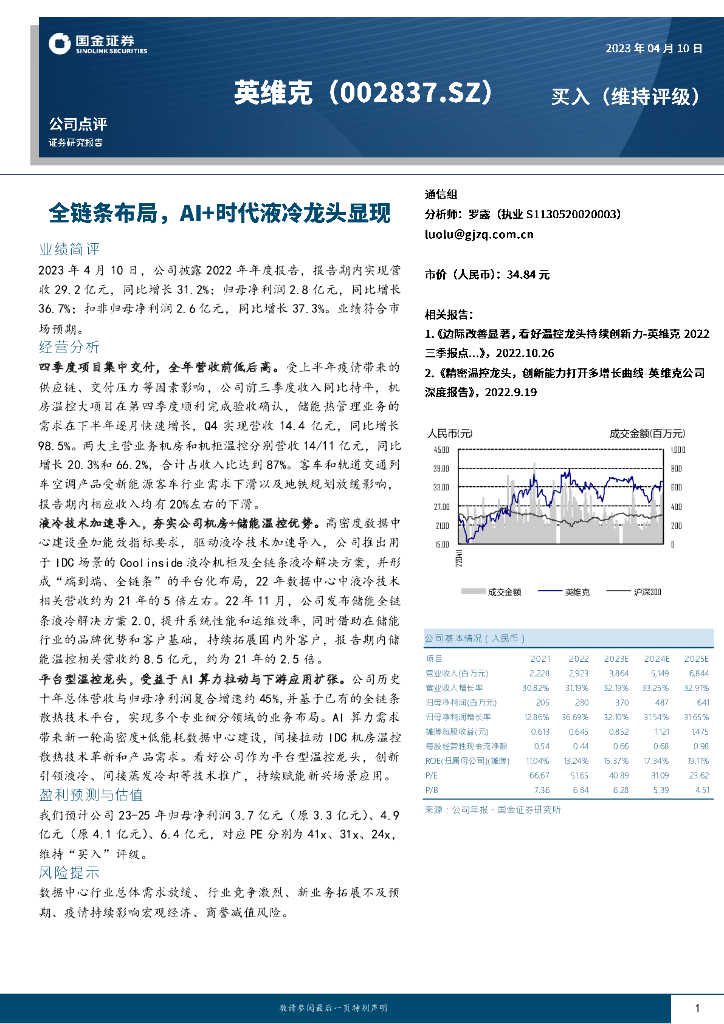 国金证券:英维克(002837)-全链条布局,AI+时代液冷龙头显现.pdf