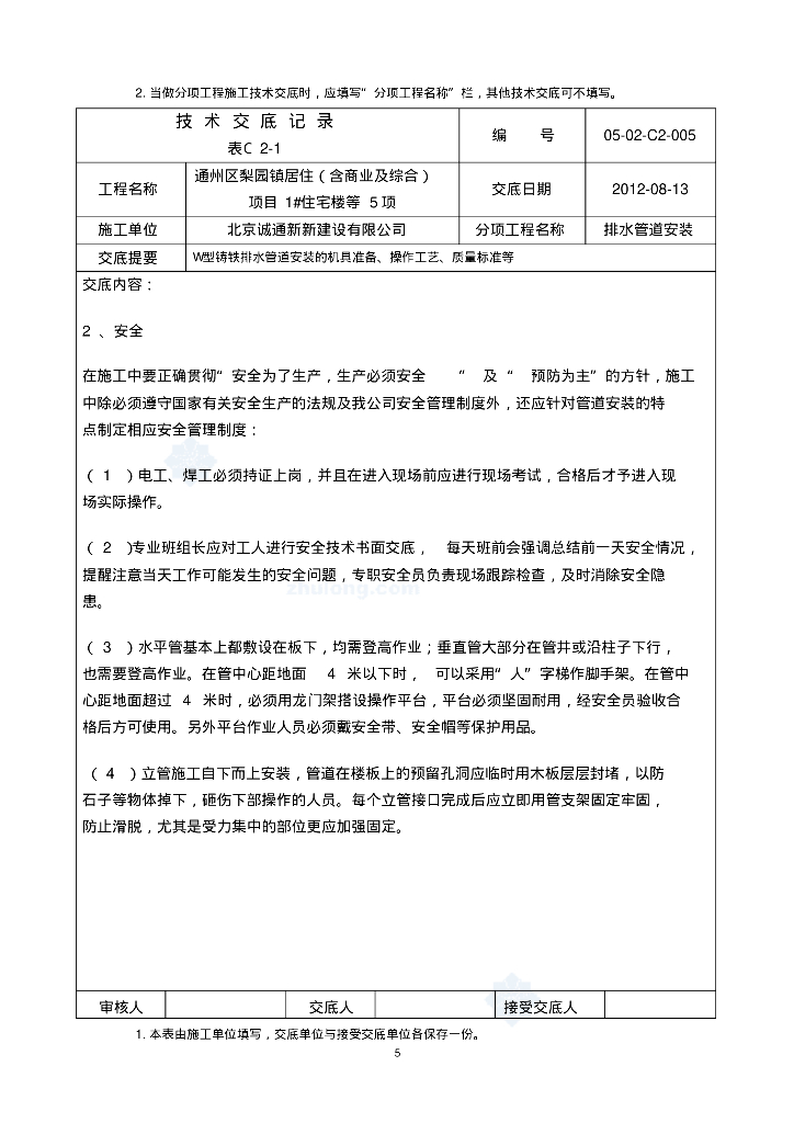 通州区梨园镇居住项目排水管安装技术交底记录.pdf