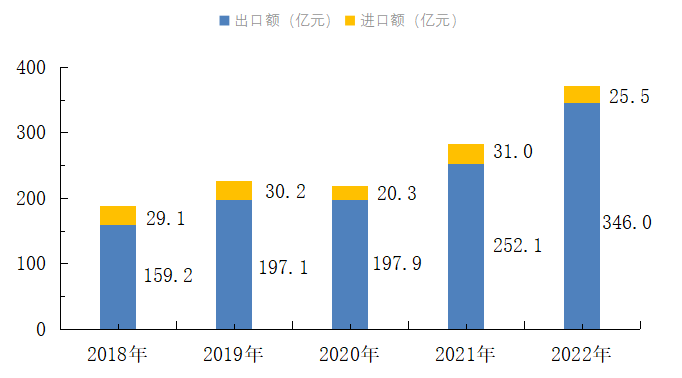 全市进出口总额371.5亿元,比上年增长31.2%。其中,出口346.0亿元,增长37.2%;进口25.5亿元,下降17.6%。