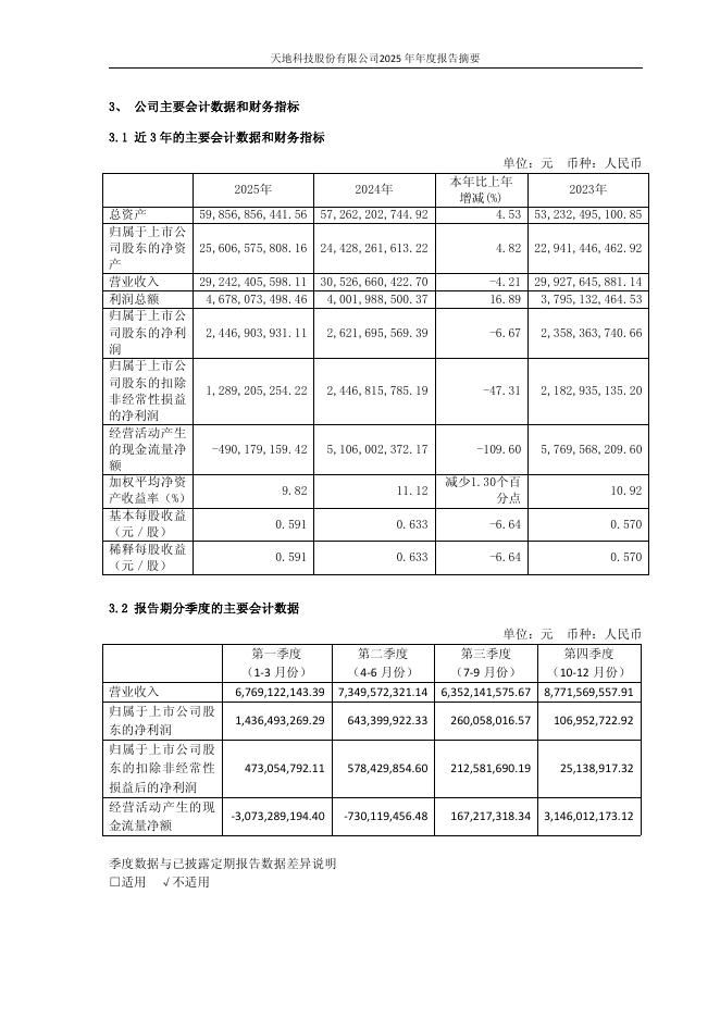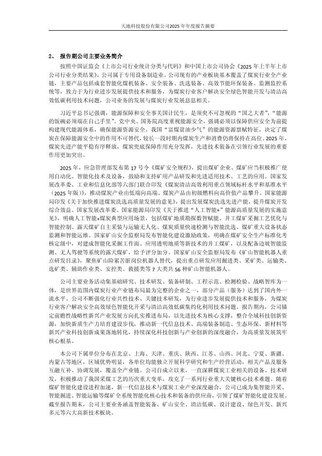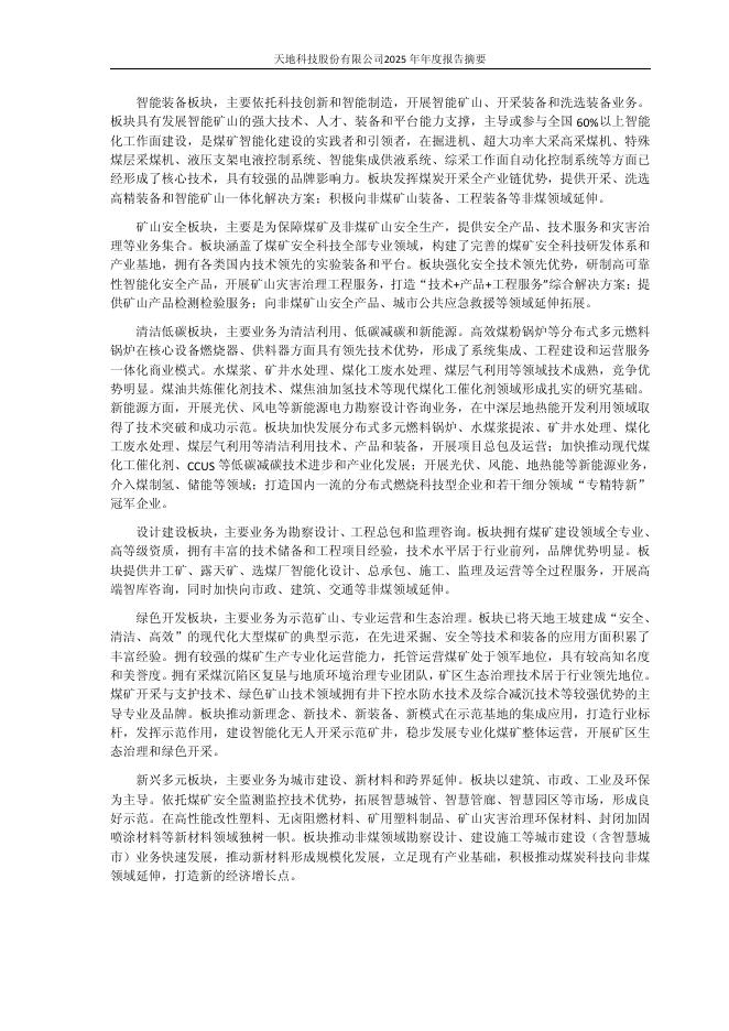 600582-天地科技:天地科技2025年年度报告摘要.pdf