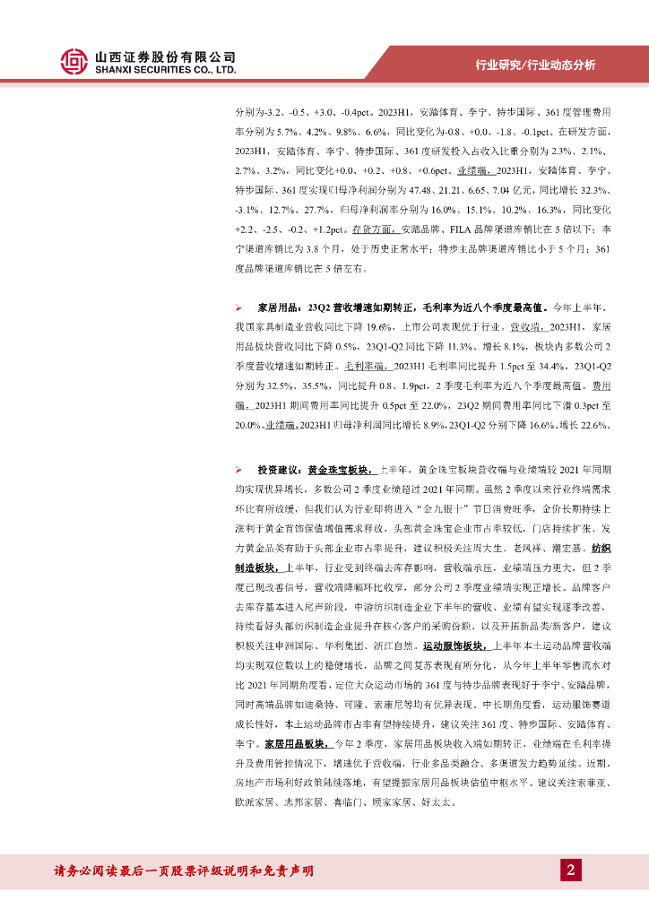 山西证券:纺织服装行业2023中报总结:23Q2各板块业绩改善已现,纺织制造订单拐点可期.pdf