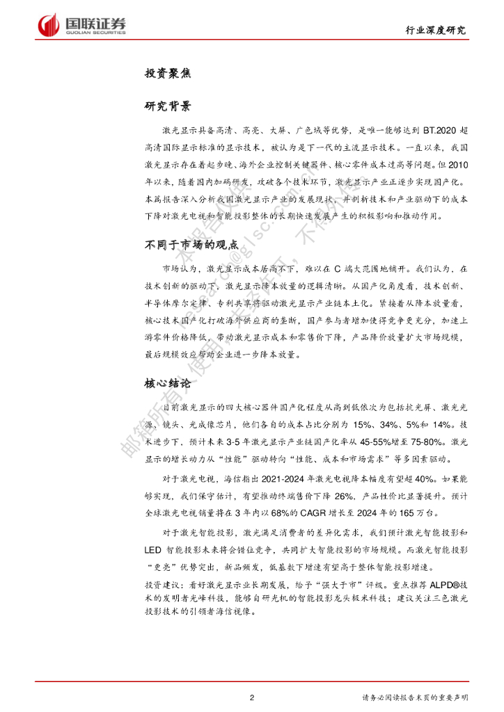 国联证券:激光显示专题:从追随到领先,产业化打开增量空间.pdf
