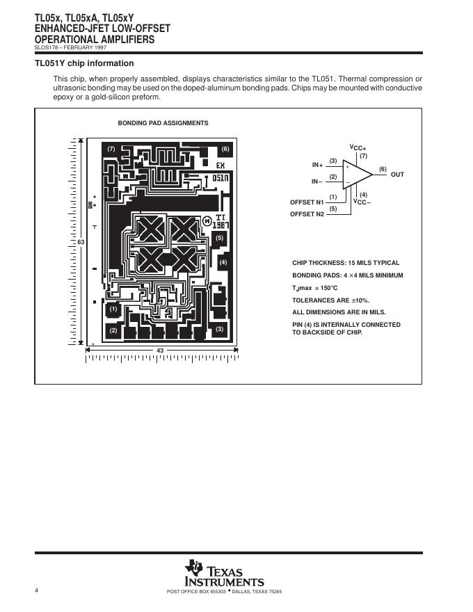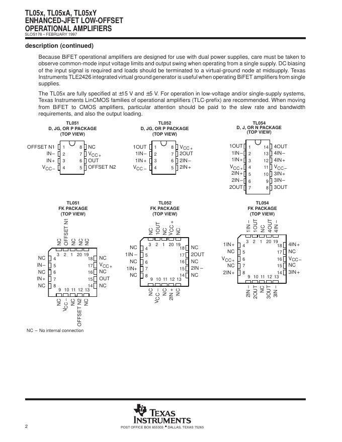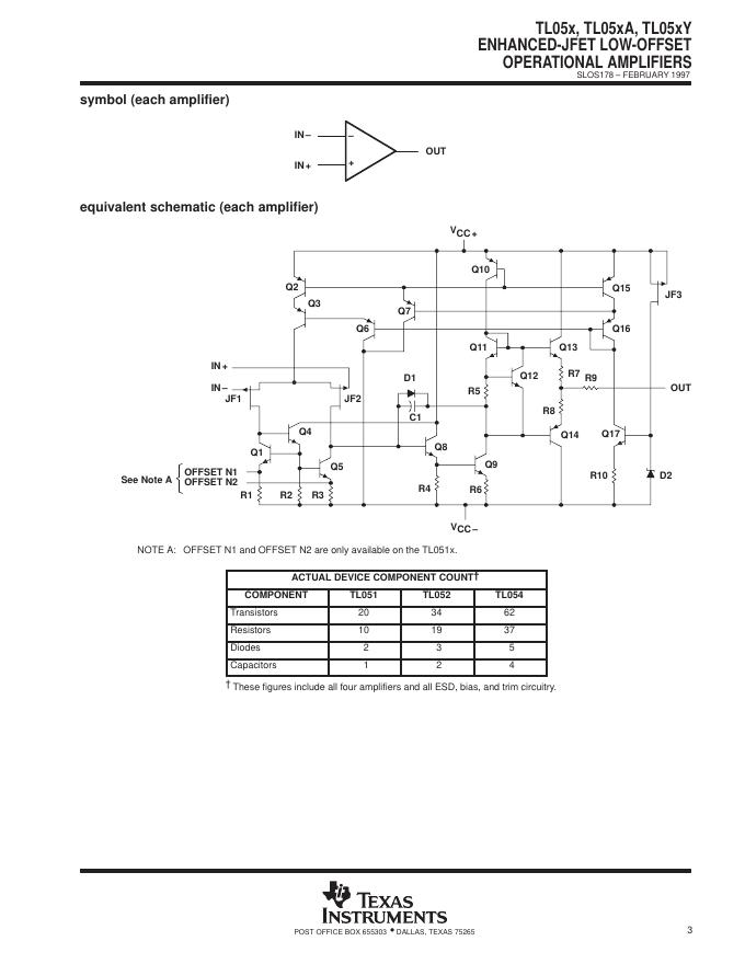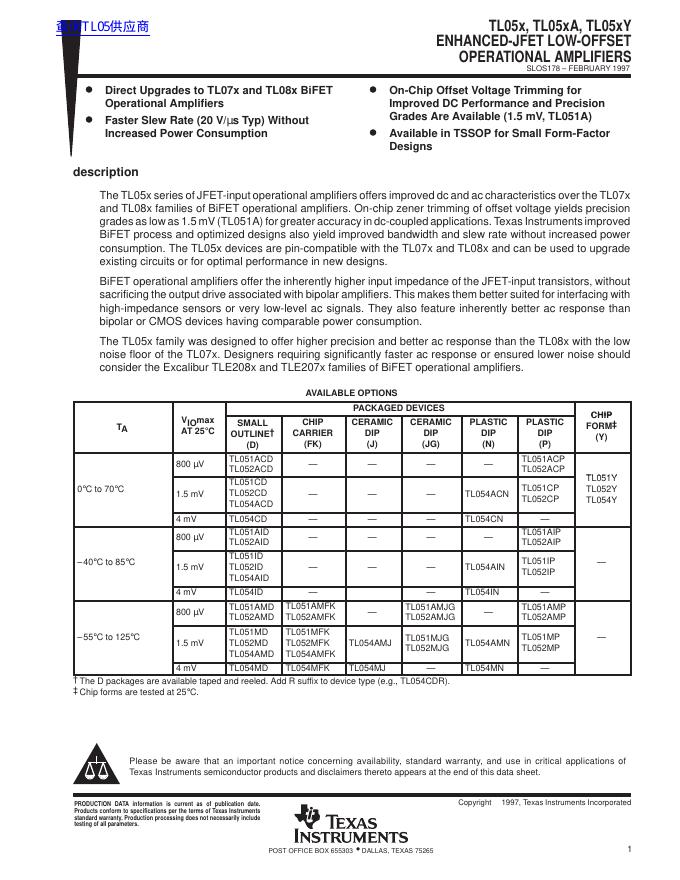 TEXAS INSTRUMENTS TL05x, TL05xA, TL05xY ENHANCED-JFET LOW-OFFSET OPERATIONAL AMPLIFIERS 数据手册.pdf