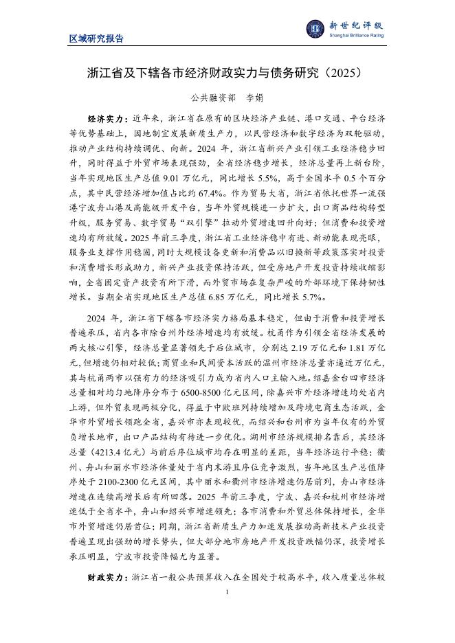 新世纪评级:浙江省及下辖各市经济财政实力与债务研究(2025).pdf