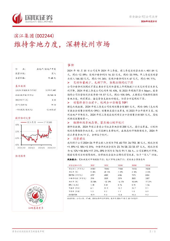 国联证券:滨江集团(002244)-维持拿地力度,深耕杭州市场.pdf