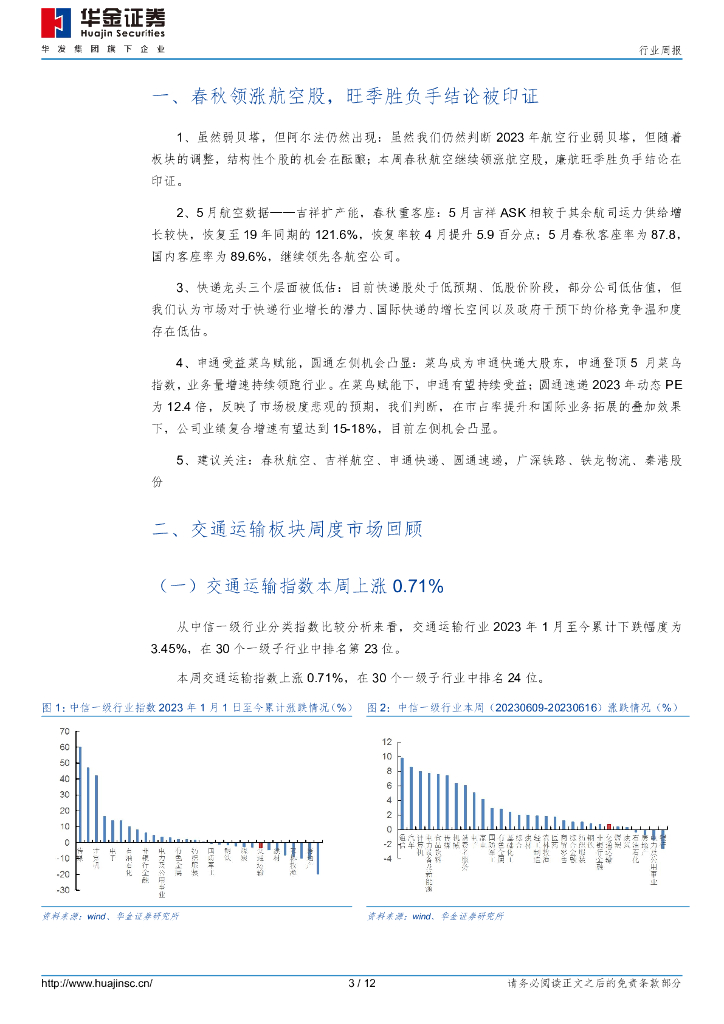 华金证券:交通运输行业周报:春秋领涨航空股,旺季胜负手结论被印证.pdf