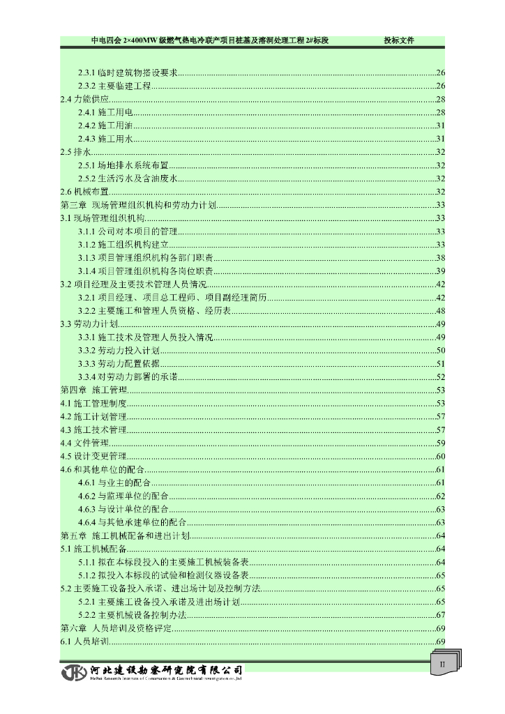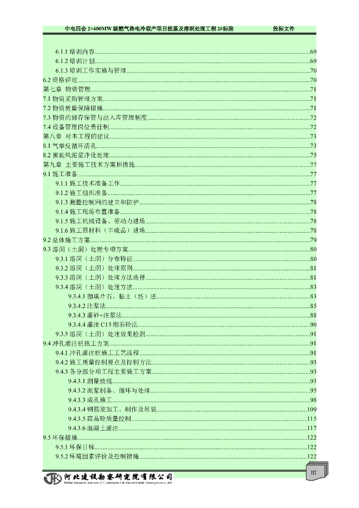 燃气热电冷联产项目桩基及溶洞处理工程投标文件(共211页,附施工总平面布置图及施工进度计划横道图).doc
