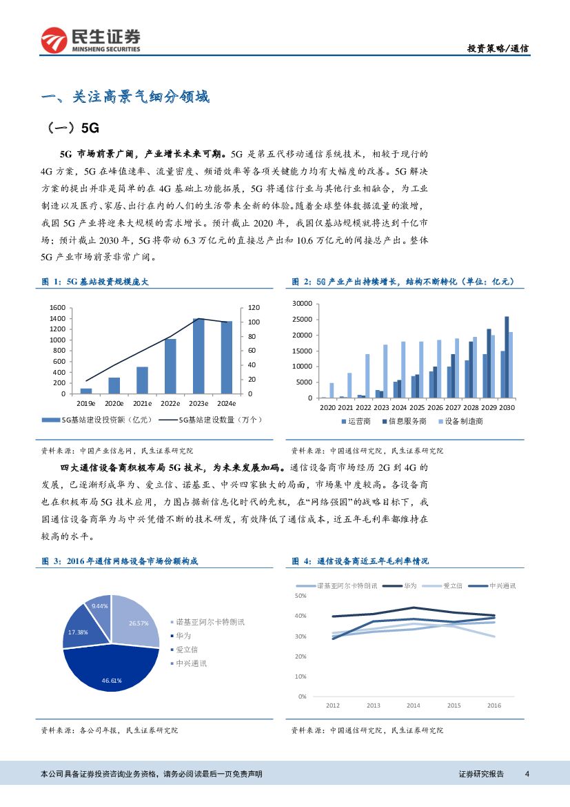 民生证券:通信行业投资策略报告:关注细分领域,聚焦行业龙头.pdf