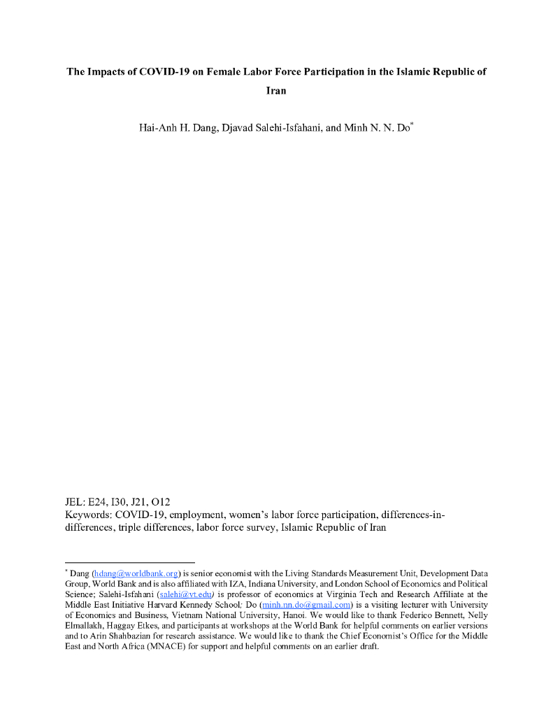 世界银行:新冠肺炎对伊朗伊斯兰共和国女性劳动力参与的影响(英文版).pdf