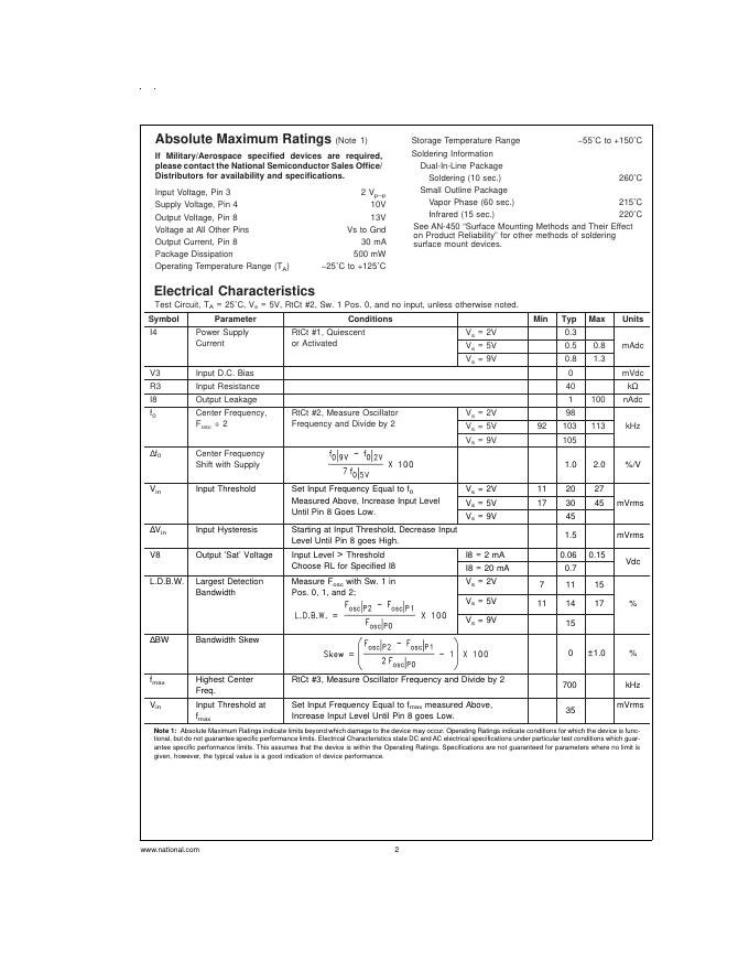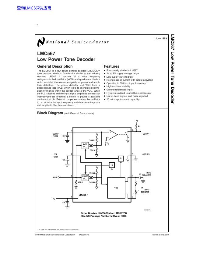 National Semiconductor LMC567 Low Power Tone Decoder 数据手册.pdf