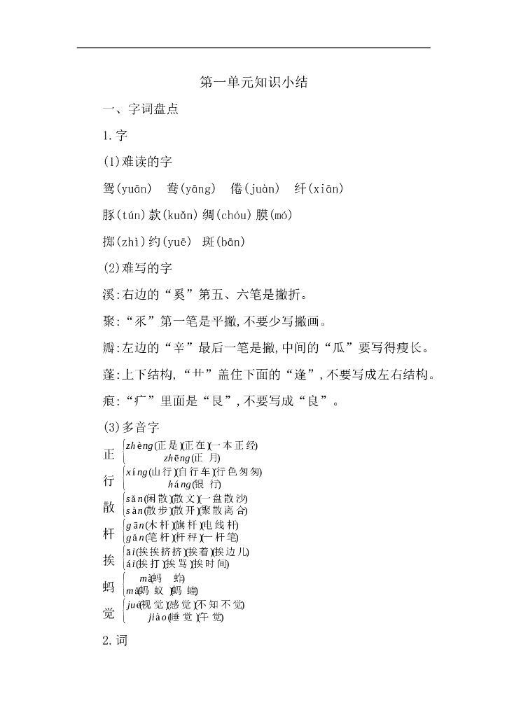统编语文三年级下册第一单元知识小结.doc
