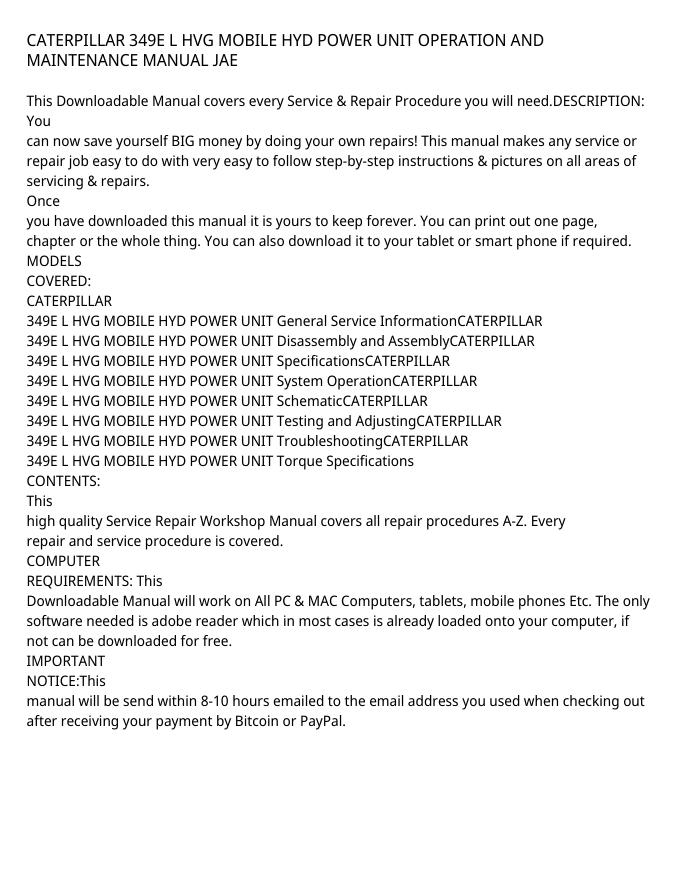 CATERPILLAR 349E L HVG MOBILE HYD POWER UNIT 操作和维护手册.pdf