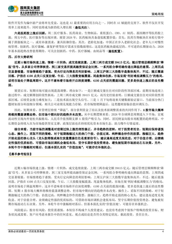 英大证券:每周投资早参:短期A股快速上涨后良性整固,中期向好的趋势或并未改变-260120.pdf