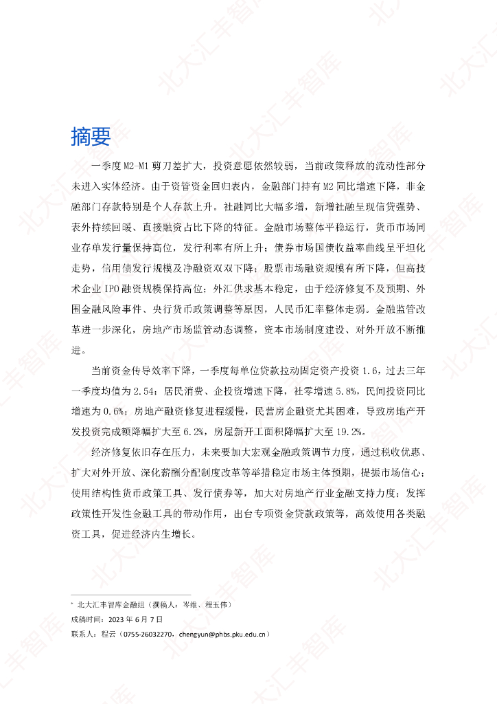 北大汇丰智库:2023年第一季度中国宏观金融形势与政策季度报告.pdf