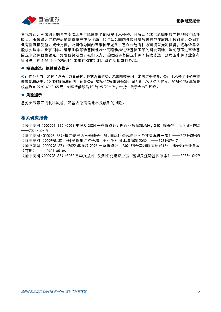 国信证券:隆平高科(000998)-汇兑损失拖累盈利,水稻种子份额维持提升.pdf