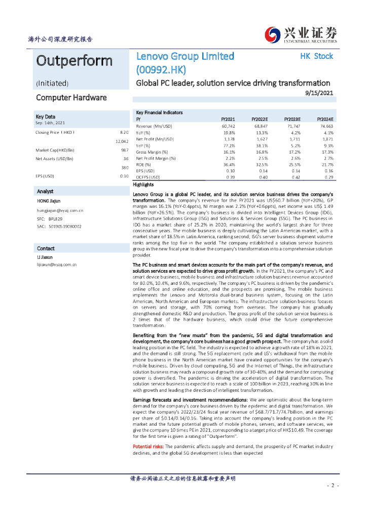 兴业证券:联想集团-全球PC龙头,方案服务引领智能化转型.pdf