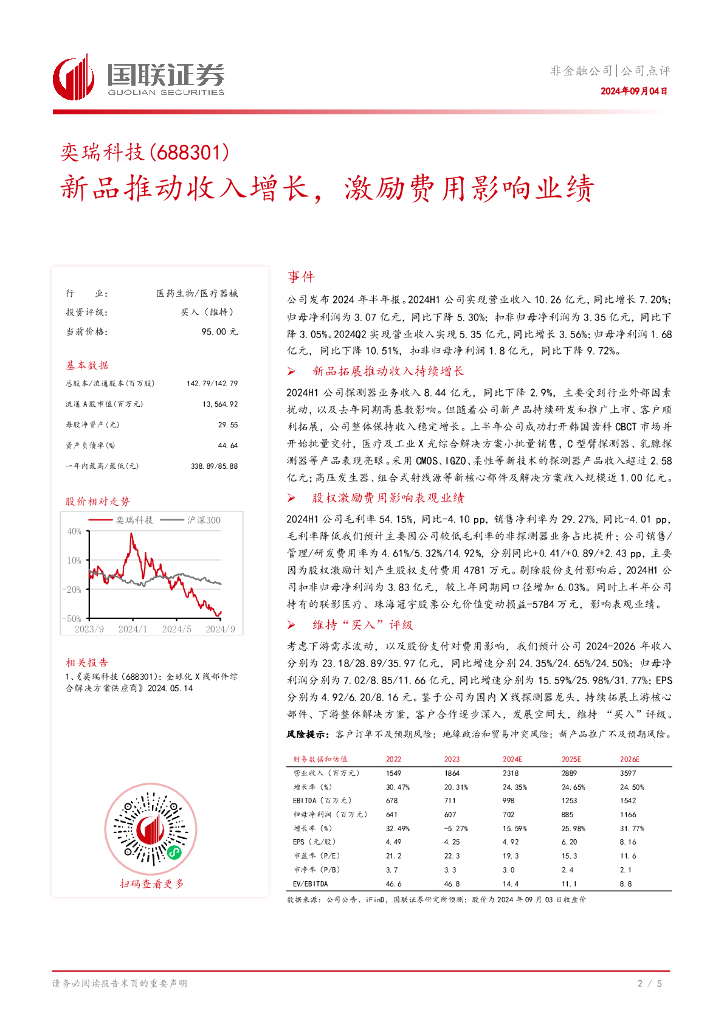国联证券:奕瑞科技(688301)-新品推动收入增长,激励费用影响业绩.pdf