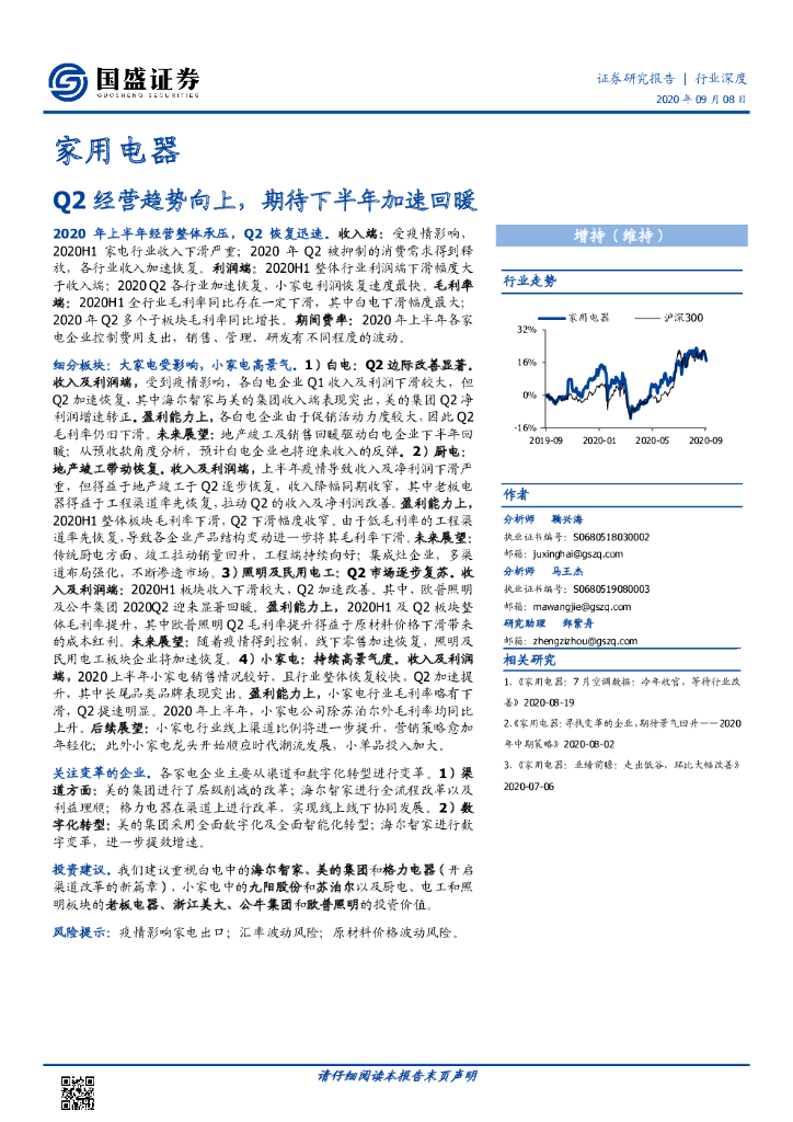国盛证券:家用电器行业深度:Q2经营趋势向上,期待下半年加速回暖.pdf