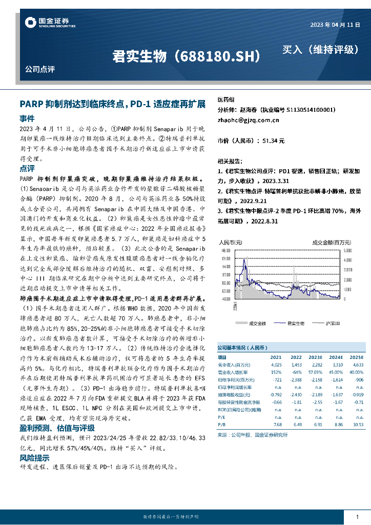 国金证券:君实生物(688180)-PARP抑制剂达到临床终点,PD-1适应症再扩展.pdf